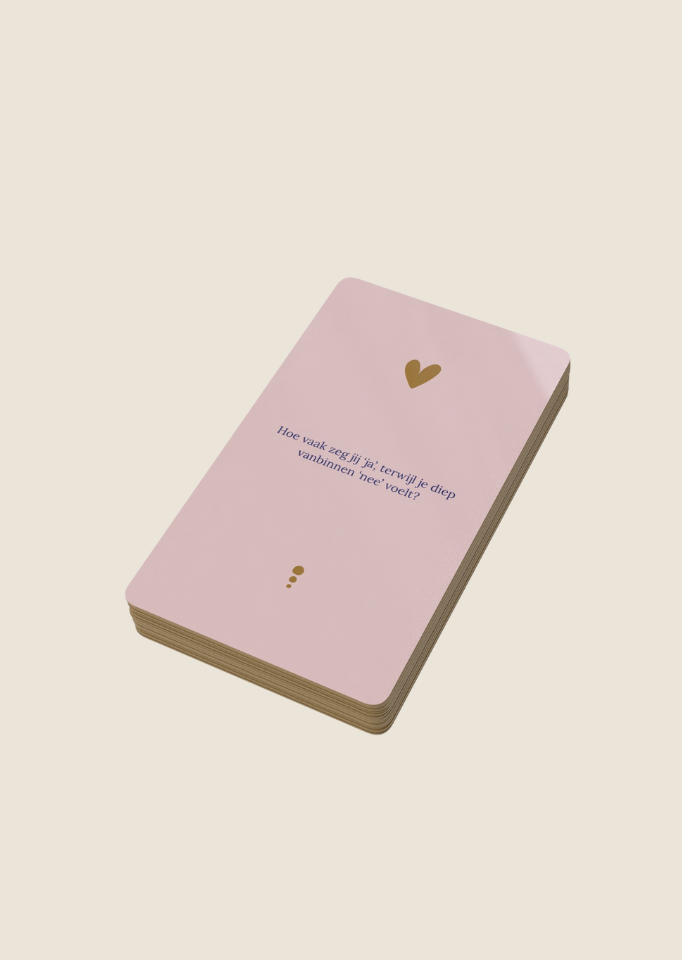 Elke kaart bevat een diepgaande vraag die je aan het denken zet, je uitdaagt om eerlijk te kijken en je helpt om dichter bij jezelf te komen.